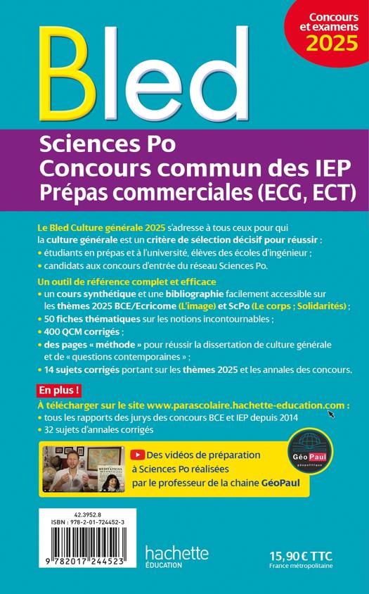 Le Bled Culture générale 2025 s’adresse aux étudiants en classes préparatoires aux grandes écoles, aux candidats aux concours d’entrée du réseau Sciences Po, aux élèves des écoles d’ingénieur, ainsi qu’aux étudiants à l’université.