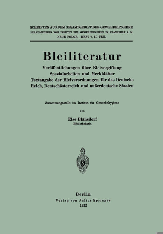 Veröffentlichungen Über Bleivergiftung Spezialarbeiten Und Merkblätter Textangabe Der Bleiverordnungen Für Das Deutsche Reich, Deutschösterreich Und Außerdeutsche Staaten