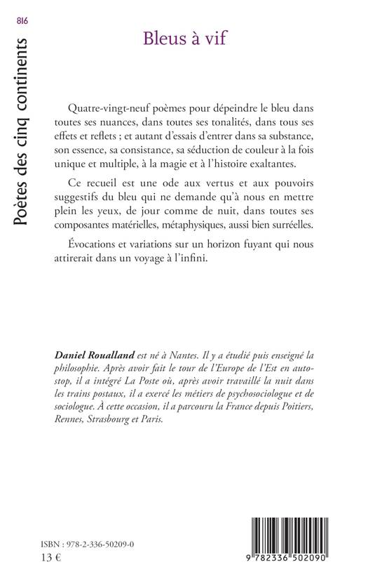 Quatre-vingt-neuf poèmes pour dépeindre le bleu dans toutes ses nuances, dans toutes ses tonalités, dans tous ses effets et reflets ; et autant d’essais d’entrer dans sa substance, son essence, sa consistance, sa séduction de couleur à la fois unique et multiple, à la magie et à l’histoire exaltantes.