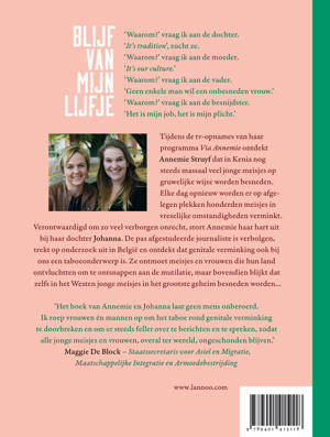 'Waarom?' vraag ik aan de dochter. 'It's tradition', zucht ze. 'Waarom?' vraag ik aan de moeder. 'It's our culture.' 'Waarom?' vraag ik aan de vader. 'Geen enkele man wil een onbesneden vrouw.' 'Waarom?', vraag ik aan de besnijdster. 'Het is mijn job, het is mijn plicht.' Tijdens de tv-opnames van haar programma Via Annemie ontdekt Annemie Struyf dat in Kenia nog steeds massaal veel jonge meisjes op gruwelijke wijze worden besneden. Elke dag opnieuw worden er op afgelegen plekken honderden meisjes in vreselijke omstandigheden verminkt. Verontwaardigd om zo veel verborgen onrecht stort Annemie haar hart uit bij haar dochter Johanna. De pas afgestudeerde journaliste is verbolgen, trekt op onderzoek uit in België en ontdekt dat genitale verminking ook bij ons een taboe-onderwerp is. Ze ontmoet meisjes en vrouwen die hun land ontvluchtten om te ontsnappen aan de mutilatie, maar bovendien blijkt dat zelfs in het westen jonge meisjes in het grootste geheim besneden worden...