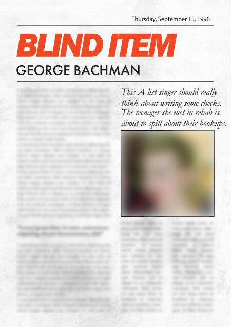 This A-list singer should really think about writing some checks. The teenager she met in rehab is about to spill about their hookups.