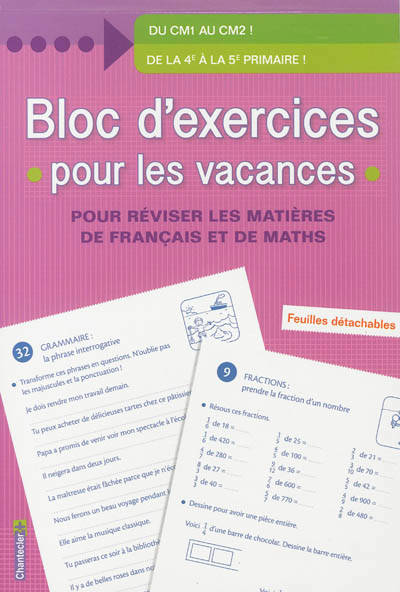 Travailler avec les poids et les mesures, multiplier et diviser par écrit, conjuguer des verbes… Votre enfant a appris une multitude de choses durant l'année écoulée. Il peut en être fier ! Il serait vraiment dommage que son niveau recule pendant les vacances. Pour retenir la matière, il est important de réviser. Les exercices de ce bloc peuvent efficacement aider votre enfant. Laissez-le remplir une page par jour. Ce petit effort l'aidera à retenir la matière ou à lui rafraîchir la mémoire. Les exercices sont conformes aux programmes scolaires et idéaux pour réviser pendant les vacances d'été !