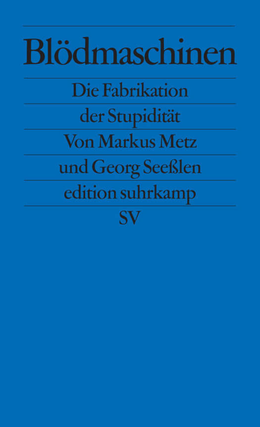 »Fernsehen macht dumm«, »Unser Bildungssystem produziert karrieristische Fachidioten«, »Der Kapitalismus braucht Konsumtrottel«. Wenn eine Gesellschaft auf das in ihr (zu Recht) grassierende Unbehagen an »allgemeiner Verblödung« statt mit handfesten Gegenmaßnahmen bevorzugt mit kulturpessimistischen Slogans und Verschwörungstheorien reagiert, wird klar, wie sehr sie sich bereits in ihrem Dummsein eingerichtet, es gar zum System erhoben hat. Markus Metz und Georg Seeßlen analysieren die Mechanismen, mit denen Dummheit heute produziert wird, nebst den fatalen Strategien, mit denen die meisten Individuen sie »bewältigen« und dadurch noch verstärken. Wer sich der Dynamik der »Blödmaschinen« nicht blind oder - noch schlimmer - sehend ergeben möchte, muß ihre Strukturen begreifen. Nur so entsteht die Chance, sie zu zerschlagen.