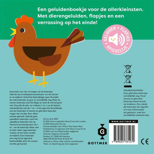 Het leukste geluidenboekje met boerderijdieren voor kindjes vanaf 1 jaar! 'Wat hoor ik daar? - Boe!' is een innovatief en interactief flapjesboek dat perfect is voor nieuwsgierige peuters. In dit kartonboekje met het thema boerderij hoor je vijf verschillende dierengeluiden. Luister samen naar het geluid, raad welk dier zich verstopt en til het flapje op om te zien welk boerderijdier het is! Was het een varken, een schaap, een kip of een koe? Als verrassing aan het einde: een geluidje en een spiegel waarin je kindje zichzelf kan zien!