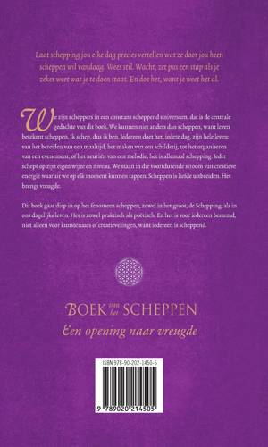 Van het bereiden van een maaltijd, het maken van een schilderij, tot het organiseren van een evenement of het neuriën van een melodie, het is allemaal schepping. Ieder schept op zijn eigen wijze en niveau. We staan in die voortdurende stroom van creatieve energie waaruit we op elk moment kunnen tappen. Scheppen is liefde uitbreiden. Het is vreugde.