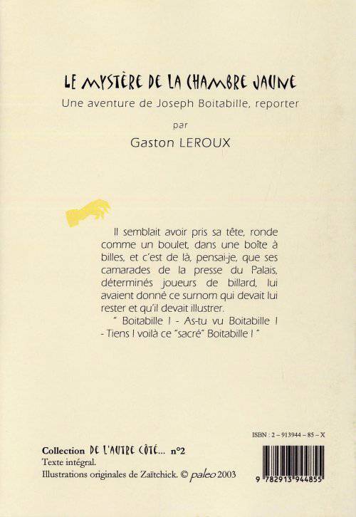 Edition du texte original du roman de Gaston Leroux (Rouletabille et le Mystère de la chambre jaune), paru en revue. Edition de François Andrieux. Illustrations de Zaïtchick.