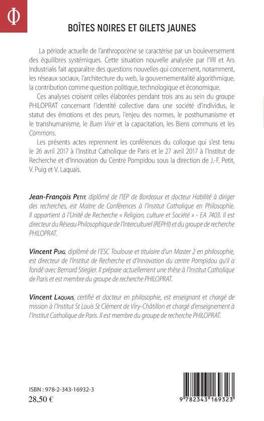 La période actuelle de l'anthropocène se caractérise par un bouleversement des équilibres systémiques. Cette situation nouvelle analysée par l'IRI et Ars Industrialis fait apparaître des questions nouvelles qui concernent, notamment, les réseaux sociaux, l'architecture du web, la gouvernementalité algorithmique, la contribution comme question politique, technologique et économique. Ces analyses croisent celles élaborées pendant trois ans au sein du groupe PHILOPRAT concernant l'identité collective dans une société d'individus, le statut des émotions et des peurs, l'enjeu des normes, le posthumanisme et le transhumanisme, le Buen Vivir et la capacitation, les Biens communs et les Commons.