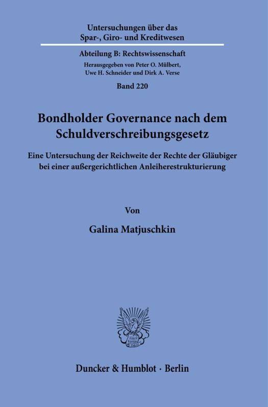 Mit dem deutlichen Anstieg des Anleihemarktes sowie zugenommener Risikoaversion der Anleger nach der Finanzkrise 2007 bis 2009 steigt die Bedeutung des Schuldverschreibungsgesetzes, das zum Ziel der Ermoglichung der Glaubigerorganisation bei einer auaergerichtlichen Anleiherestrukturierung gefasst wurde. In der Arbeit werden die wichtigsten Optionen der Anleiheglaubiger dargestellt, inklusive solcher, die uber bloae Anderung der Bedingungen im Wege eines Mehrheitsbeschlusses hinausgehen. Auaerdem wird die Frage untersucht, ob deutsches Recht der Anleiherestrukturierung im Vergleich zum US-amerikanischen und englischen Recht konkurrenzfahig ist. Die Arbeit kommt zum Ergebnis, dass die Anpassung an die internationalen Standards nicht erforderlich erscheint. Die Arbeit kritisiert allerdings die Idee des Gesetzgebers, die Rechtsschutzmoglichkeiten der opponierenden Glaubiger in Analogie zum Aktienrecht zu gestalten, und setzt sich mit den alternativen Losungswegen auseinander.