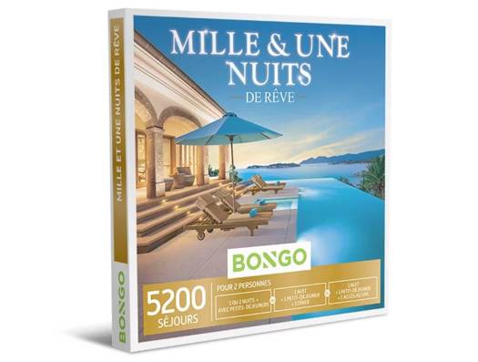 Le coffret Bongo Mille et Une Nuits de Rêve est l'évasion rêvée pour profiter d'une pause à deux dans un cadre soigneusement sélectionné, où chaque détail est pensé pour offrir une expérience unique et ressourçante. Que vous soyez en quête de détente en pleine nature, de moments de relaxation au bord de la mer, ou d'une escapade dynamique en ville, ce coffret répond à toutes les envies d'ailleurs. Grâce à lui, il ne vous reste plus qu'à choisir votre destination préférée pour un séjour enchanteur.