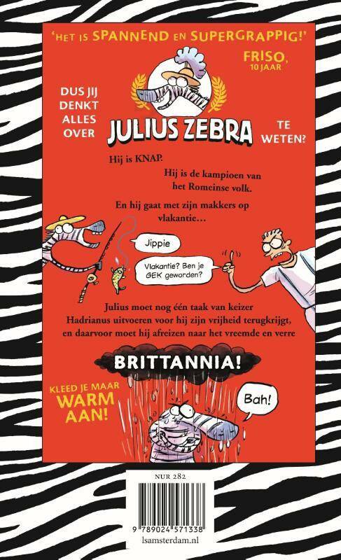 Julius Zebra en zijn vrienden hebben de gevechten in de beruchtste arena in Rome overleefd. Maar ze zitten nog steeds gevangen. Keizer Hadrianus laat ze pas vrij als ze nog een laatste opdracht vervullen: ze moeten naar Engeland afreizen en daar zieltjes ronselen voor het Romeinse Rijk. Maar zoals te verwachten valt, wordt dit niet bepaald een vakantietripje voor Julius en zijn makkers. Ze hebben al hun overredingskracht nodig om de gevaarlijkste en opstandigste vijanden tot nog toe te overreden…