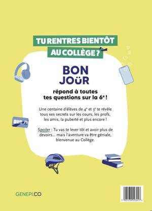 Le guide qui répond à toutes les questions sur la 6ᵉ ! À travers des chapitres gourmands et colorés, les collégiens révèlent tous leurs secrets pour aborder la rentrée l’esprit tranquille. La découverte du collège, les profs, les cours, les Youtubers pour réviser, tout ce qu’ils doivent connaitre. Une aventure inoubliable les attend. Bienvenue au collège !