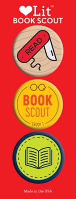 . . . or your backpack, tote, or lapel. This 3-pack button assortment for book lovers includes "Book Scout," a book merit badge, and "Read" written on the side of a pocketknife.