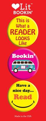 . . . or your backpack, tote, or lapel. This 3-pack button assortment for hippie book lovers includes "This is What a Reader Looks Like," "Bookin'," and "Have a Nice Day...Read." Buttons are 1.25 inches wide.
