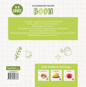 In de serie In de groei lees je hoe verschillende dieren, planten en schimmels groeien. Dit boek gaat over bonen. Van peultjes en bruine bonen, tot sojabonen en pronkbonen. Je komt veel bijzonders te weten. Wist je bijvoorbeeld dat sommige bonenplanten langer dan jij kunnen worden? Bekijk dit boek en laat je verbazen!