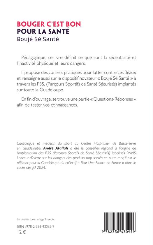 Pédagogique, ce livre définit ce que sont la sédentarité et l'inactivité physique et leurs dangers. Il propose des conseils pratiques pour lutter contre ces fléaux et renseigne aussi sur le dispositif novateur Boujé Sé Santé à travers les P3S, (Parcours Sportifs de Santé Sécurisés) implantés sur toute la Guadeloupe. En fin d'ouvrage, se trouve une partie Questions Réponses afin de tester vos connaissances.