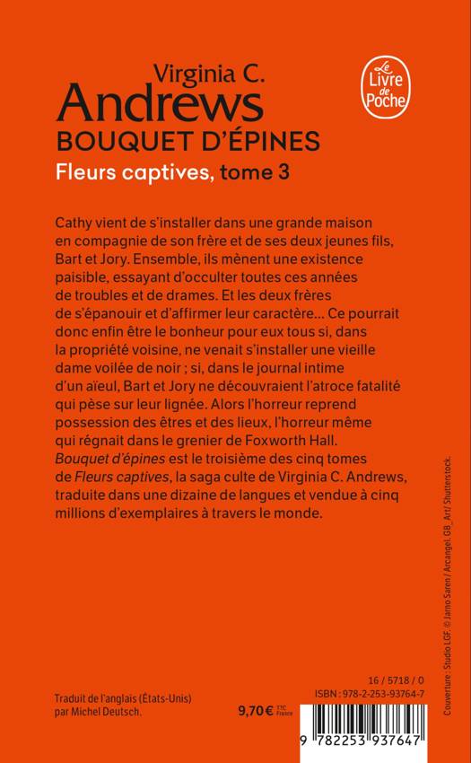 Bouquet d’épines est le troisième des cinq tomes de Fleurs captives, la saga culte de Virginia Andrews, traduite dans une dizaine de langues et vendue à cinq millions d’exemplaires à travers le monde.