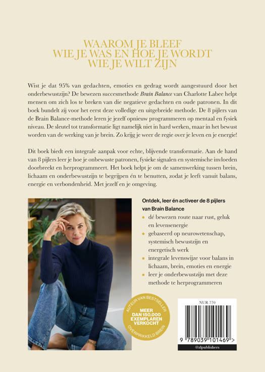 Wist je dat 95% van gedachten, emoties en gedrag wordt aangestuurd door het onderbewustzijn? De bewezen succesmethode Brain Balance van Charlotte Labee helpt mensen om zich los te breken van die negatieve gedachten en oude patronen. In dit boek bundelt zij voor het eerst deze volledige en uitgebreide methode. De 8 pijlers leren je jezelf opnieuw te programmeren op mentaal en fysiek niveau. De sleutel tot transformatie ligt namelijk niet in hard werken, maar in het bewust worden van de werking van je brein. Zo krijg je weer de regie over je leven en je energie!