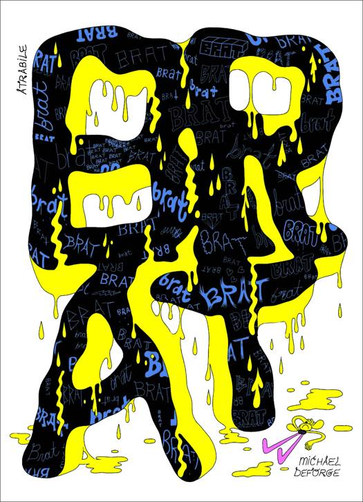 Une énorme star. Voilà qui est Miss D., une énorme star dans son domaine, à savoir la délinquance juvénile. Certes, elle est de moins en moins jeune, certes, il lui reste des fans zélés, certes elle compte bien se maintenir au top, mais la concurrence fait rage, et rester célèbre et adulée est un combat de tous les jours. Face aux médias, face à la compétition, elle doit accomplir un grand coup qui laissera le monde sur l’arrière-train. Dans Brat, Michael DeForge fait un pas de côté avec la réalité pour mieux taper sur notre petit monde, qui ne demande rien mais le mérite bien. Reconnaissance éphémère, sur-médiatisation du vide, quête stérile de la célébrité, récupération commerciale (de l’acte de rébellion, de l’idée de révolution), jeunisme à tout crin, voilà ce que tacle Michael DeForge, à l’heure où l’attitude a plus d’importance que le sens, où l’image est partout mais ne veut plus rien dire. Enfant de la modernité mais pas dupe pour autant, Michael DeForge est une espèce de génie versatile, imprévisible et passionnant à suivre, trublion surdoué de la bande dessinée nord-américaine, dont le travail nous hante et nous obsède. Véritable mine d’idées et d’inventions visuelles, sans barrière ni limite, Michael DeForge prouve, à chaque nouveau livre, l’incroyable potentiel d’un art (la bande dessinée!) qui n’a pas encore tout dit ni tout montré.