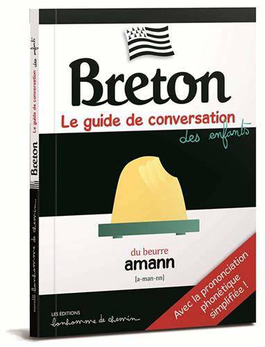 Un guide de conversation en breton destiné aux enfants, avec des images pour chaque mot et une prononciation phonétique simplifiée.