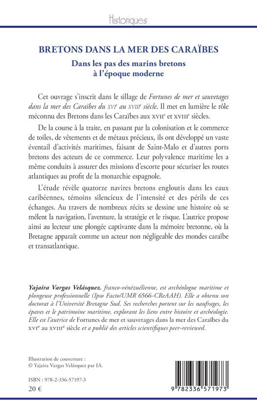 Cet ouvrage s'inscrit dans le sillage de Fortunes de mer et sauvetages dans la mer des Caraïbes du XVIe au XVIIIe siècle. Il met en lumière le rôle méconnu des Bretons dans les Caraïbes aux XVIIe et XVIIIe siècles. De la course à la traite, en passant par la colonisation et le commerce de toiles, de vêtements et de métaux précieux, ils ont développé un vaste éventail d'activités maritimes, faisant de Saint-Malo et d'autres ports bretons des acteurs de ce commerce. Leur polyvalence maritime les a même conduits à assurer des missions d'escorte pour sécuriser les routes atlantiques au profit de la monarchie espagnole. L'étude révèle quatorze navires bretons engloutis dans les eaux caribéennes, témoins silencieux de l'intensité et des périls de ces échanges. Au travers de nombreux récits se dessine une histoire où se mêlent la navigation, l'aventure, la stratégie et le risque. L'autrice propose ainsi au lecteur une plongée captivante dans la mémoire bretonne, où la Bretagne apparaît comme un acteur non négligeable des mondes caraïbe et transatlantique.