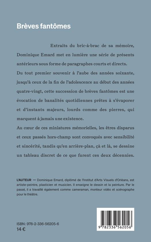 Extraits du bric-à-brac de sa mémoire, Dominique Emard met en lumière une série de présents antérieurs sous forme de paragraphes courts et directs. Du tout premier souvenir à l'aube des années soixante, jusqu'à ceux de la fin de l'adolescence au début des années quatre-vingt, cette succession de brèves fantômes est une évocation de banalités quotidiennes prêtes à s'évaporer et d'instants majeurs, lourds comme des pierres, qui marquent à jamais une existence. Au coeur de ces miniatures mémorielles, les êtres disparus et ceux passés hors-champ sont convoqués avec sensibilité et sincérité, tandis qu'en arrière-plan, çà et là, se dessine un tableau discret de ce que furent ces deux décennies.