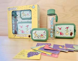 1 brooddoos met een leuke, nieuwe tekening van de #brooddoosbriefjes-buddies. De brooddoos mag in de vaatwasser! 1 snackdoosje, voor het eerst bedrukt met een nieuwe prent! Ook dit doosje kan veilig in de vaatwas! 30 gloednieuwe #brooddoosbriefjes : 15 met tekst, voor kindjes die kunnen lezen (of voor kindjes met lieve juffen en meesters die het willen voorlezen!), en 15 met een tekening alleen (en natuurlijk plek voor een aanspreking en een ondertekening). 1 drinkfles, met motiverende waterdruppeltjes om de hele fles helemaal leeg te drinken!