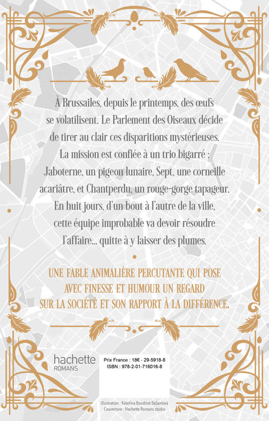 La mission est confiée à un trio bigarré : Jaboterne, un pigeon lunaire. Sept, une corneille acariâtre, et Chantperdu, un rouge-gorge tapageur.