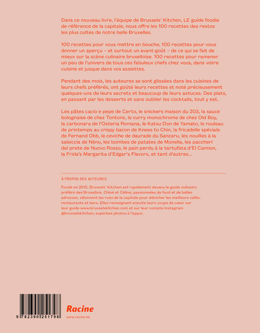 100 recettes pour vous mettre en bouche, 100 recettes pour vous donner un aperçu – et surtout un avant-goût – de ce qui se fait de mieux sur la scène culinaire bruxelloise. 100 recettes pour ramener un peu de l'univers de tous ces fabuleux chefs chez vous, dans votre cuisine et jusque dans vos assiettes.