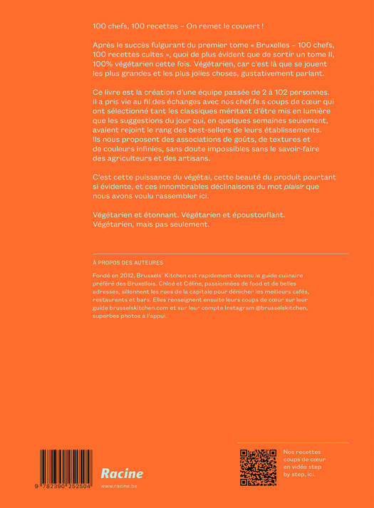 Après le succès fulgurant du premier tome « Bruxelles – 100 chefs, 100 recettes cultes », quoi de plus évident que de sortir un tome II, 100% végétarien cette fois.