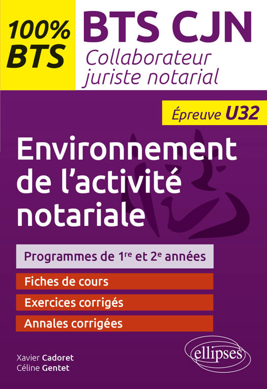 Cet ouvrage s’adresse à tous les élèves du BTS collaborateur juriste notarial préparant l’épreuve Environnement de l’activité notariale (épreuve U32).