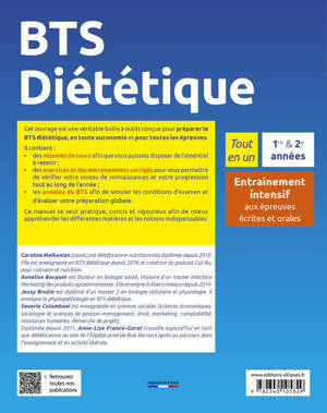 Cet ouvrage est une véritable boîte à outils conçue pour préparer le BTS diététique, en toute autonomie et pour toutes les épreuves.