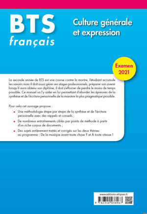 La seconde année de BTS est une course contre la montre, l’étudiant accumule les savoirs, mais il doit aussi gérer ses stages professionnels, préparer son avenir lorsqu’il aura obtenu son diplôme, il doit s’efforcer de perdre le moins de temps possible. Ce manuel va l’y aider en lui permettant d’aborder les épreuves de la synthèse et de l’écriture personnelle de la manière la plus pragmatique possible. Pour cela cet ouvrage propose :