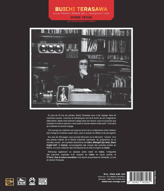 Quand le catalogue est sorti, il a tellement plu à Terasawa que celui-ci a ouvert encore plus grandes les portes de son studio et nous a donné accès à encore plus de matériel incroiyable. C'est ainsi qu'est né le 2d Voyage aux Frontières de l'Imaginaire de Buichi Terasawa. Il regroupe plus de 300 pages de documents et d'interviews inédits du Maître. Il propose aussi un de ses 1ers mangas, qui lui valut une mention honorable au Prix Tezuka. La fabrication haute qualité - papier grande finition, dos rond cousu, couverture cartonnée - procure au lecteur une expérience de lecture premium.