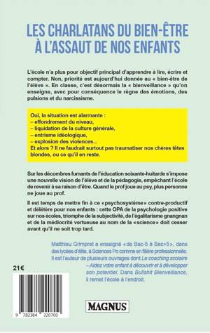 Il est temps de mettre fin à ce « psychosystème » contre-productif et délétère pour nos enfants : cette OPA de la psychologie positive sur nos écoles, triomphe de la subjectivité, de l'égalitarisme gnangnan et de la médiocrité vertueuse au nom de la « science » doit cesser avant qu'il ne soit trop tard.