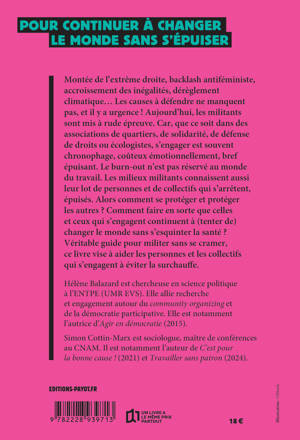 Montée de l'extrême droite, backlash antiféministe, accroissement des inégalités, dérèglement climatique... Les causes à défendre ne manquent pas, et il y a l'urgence ! Aujourd'hui, les militants sont mis à rude épreuve. Car, que ce soit dans des associations de quartiers, de solidarité, de défense de droits ou écologistes, s'engager est souvent chronophage, coûteux émotionnellement, bref épuisant. Le burn-out n'est pas réservé au monde du travail. Les milieux militants connaissent aussi leur lot de personnes et de collectifs qui s'arrêtent, épuisés. Alors comment se protéger et protéger les autres ? Comment faire en sorte que celles et ceux qui s'engagent continuent à (tenter de) changer le monde sans s'esquinter la santé ? Véritable guide pour militer sans se cramer, ce livre vise à aider les personnes et les collectifs qui s'engagent à éviter la surchauffe.
