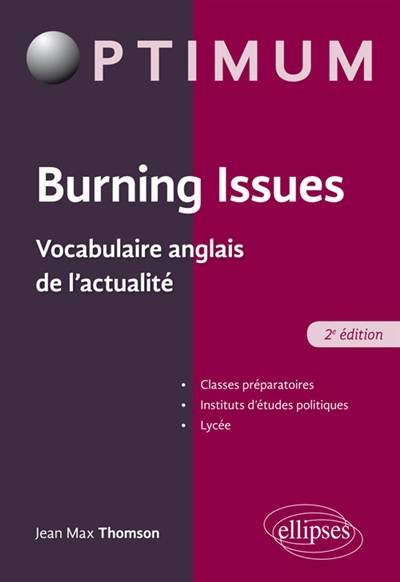 Conçu en premier lieu pour les étudiants des classes prépara toires scientifiques et commerciales ainsi que des instituts d’études politiques, Burning Issues est aussi destiné aux élèves du second cycle du lycée qui souhaitent préparer leur entrée dans l’enseignement supérieur.