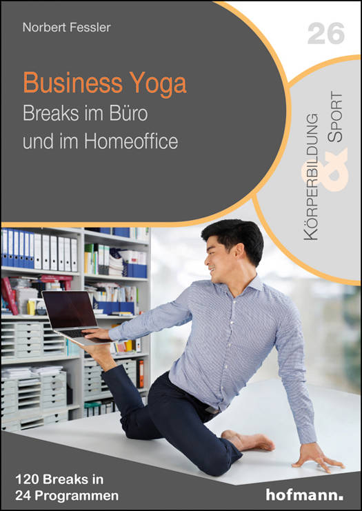 Business-Yoga wurde für die betriebliche Gesundheitsförderung entwickelt. Das Trainingssystem ist mit seinen Übungen minutenschnell am Arbeitsplatz einsetzbar. Seine Workouts können als Bewegungspausen im Arbeitsalltag verwendet werden. So steht Business-Yoga mit gezielten Übungen und Workouts zum Cool-Down in Stresssituationen und als Energie- wie auch Frischekick zur Verfügung. In vielen beruflichen Situationen, etwa vor wichtigen Gesprächen mit Vorgesetzten, Kollegen oder Kunden, in Workshops oder auch unterwegs, ist Business-Yoga wirksam. Über Büro und Homeoffice hinaus können die Übungen und Workouts auch im After-Work-Alltag für Entspannung sorgen.Inhaltlich handelt es sich bei diesem Trainingssystem um eine Symbiose von traditionellem Hatha-Yoga, modernen Bewegungskonzepten aus dem Rücken- oder Faszientraining sowie ausgewählten Körperwahrnehmungstechniken. Es ist modular aufgebaut:120 Yoga-Breaks können als Einzelübungen jederzeit vor akuter Überforderung schützen. Jede der 120 Übungen ist so gestaltet, dass sie auf ein Trainingsblatt passt. Dies eröffnet vielfältige Möglichkeiten zur Zusammenstellung persönlicher Programme. Dabei sind viele Übungen nahezu unsichtbar ausführbar, falls Sie nicht allein und ungestört im Raum sind.Die 120 Yoga-Breaks sind zu 24 Workouts zusammengefasst. Diese dauern 8 bis 14 Minuten und wurden für die Bewegungspause am Arbeitsplatz entwickelt. Das Besondere daran: 12 Programme mit jeweils 5 Übungen sind für den externen Arbeitsplatz im Betrieb, nämlich das Büro, vorgesehen und in Berufskleidung ausführbar. Gemeinsam mit den Arbeitskolleginnen und -kollegen durchgeführt, verbessern sie das Arbeitsklima. Weitere 12 Programme mit ebenfalls je 5 Übungen sind für das Homeoffice gedacht, somit kann in legerer oder sportlicher Kleidung trainiert werden.Die Workouts sprechen wichtige Präventionsfelder am Arbeitsplatz an, die den erfolgreichen Umgang mit Stress ermöglichen, nämlich Psychoregulation, Körperwahrnehmung und Körpermotorik mit je 8 Programmen für Büro und Homeoffice. Unter Psychoregulation werden Programme angeboten zu: Energie ausgleichen, Stress reduzieren, Emotionen regulieren sowie Verdauung anregen. Unter Körperwahrnehmung sind es: Aufrichtung von unten, Durchlässige Körpermitte, Aufrichtung von oben sowie Nacken, Schultern und Kopf. Unter Körpermotorik findet man: Koordination schulen, Gleichgewicht steuern, Beweglichkeit fördern sowie Kraft erhalten.Kurzum: In wenigen Minuten zur Ruhe kommen und entspannen. Zwischendurch zu sich finden. Entschleunigen, um danach beschleunigen zu können. Effizienter werden. In Ruhe konzentrieren für unruhige Zeiten.