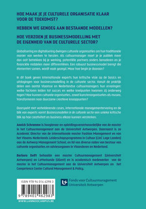 In dit boek geven internationale experts hun kritische visie op de basics en uitdagingen voor businessmodelling in de culturele sector. Vanuit de praktijk delen een aantal Vlaamse en Nederlandse cultuurmanagers hun ervaringen: welke factoren leiden tot succes en welke knelpunten kwamen zij onderweg tegen? Hoe kunnen culturele organisaties, zowel kunstenorganisaties als musea, transformeren naar duurzame creatieve knooppunten?