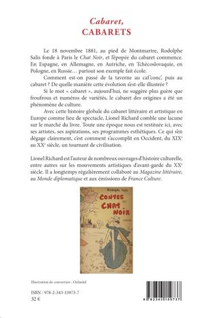 Le 18 novembre 1881, au pied de Montmartre, Rodolphe Salis fonde à Paris le Chat Noir, et l'épopée du cabaret commence. Partout en Europe, son exemple fait école. Comment est-on passé de la taverne au caf 'conc', puis au cabaret ? De quelle manière cette évolution s'est-elle illustrée ? Toute une époque nous est restituée ici, avec ses artistes, ses aspirations, ses programmes esthétiques. Ce qui s'en dégage clairement, c'est comment s'accomplit en Occident, du XIXe au XXe siècle, un tournant de civilisation.