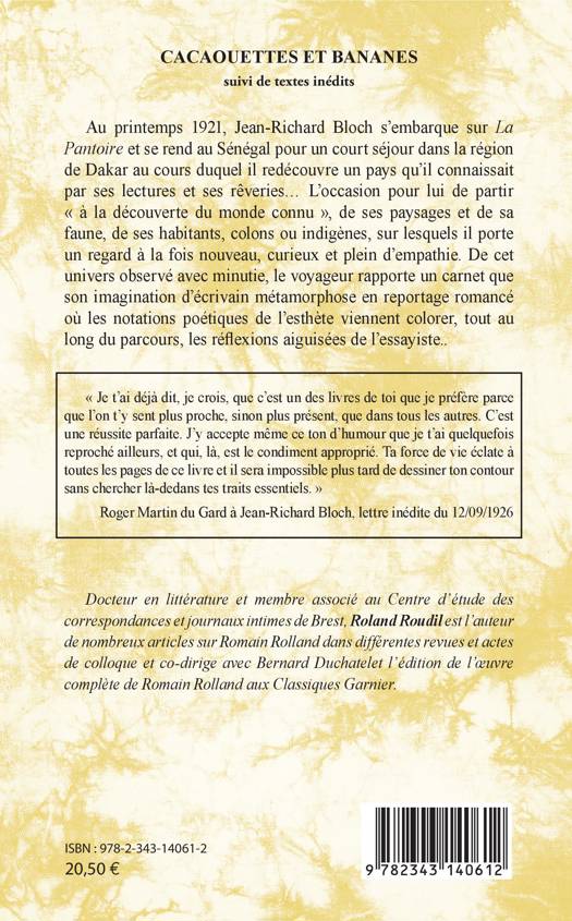 Au printemps 1921, Jean-Richard Bloch se rend au Sénégal pour un court séjour dans la région de Dakar au cours duquel il redécouvre un pays qu'il connaissait par ses lectures et ses rêveries... L'occasion pour lui de partir "à la découverte du monde connu", de ses paysages et de sa faune, de ses habitants, colons ou indigènes. Le voyageur rapporte un carnet que son imagination d'écrivain métamorphose en reportage romancé où les notations poétiques de l'esthète viennent colorer les réflexions aiguisées de l'essayiste...