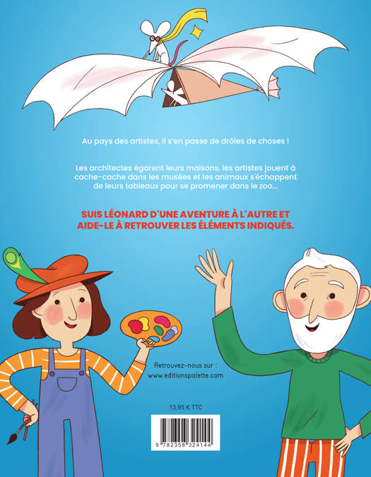 Les architectes égarent leurs maisons, les sculptures jouent à cache-cache dans les musées et les animaux s'échappent de leurs tableaux pour se promener dans le zoo. L'enfant suis Léonard d'une aventure à l'autre et aide-le à retrouver les éléments indiqués.