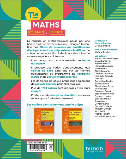 Ce cahier de calcul a été conçu par une quarantaine de professeurs de mathématiques de lycée et de classes préparatoires à l'intention des élèves de terminale spécialité Maths et option Maths expertes pour leur permettre de s'entraîner au calcul en toute autonomie.