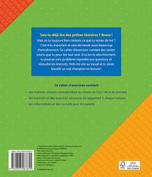 Sais-tu déjà lire des petites histoires ? Bravo ! Mais as-tu toujours bien compris ce que tu venais de lire ? C'est très important et cela demande aussi beaucoup d'entraînement. Ce cahier d'exercices contient des textes courts que tu peux lire tout seul. Si tu les lis attentivement, tu pourras sans problème répondre aux questions et résoudre les énoncés. Mets-toi vite au travail et tu seras bientôt un vrai champion en lecture ! Ce cahier d'exercices contient * des histoires simples correspondant au niveau du C(2 / 3e primaire * des énoncés et des exercices amusants se rapportant à chaque histoire * des informations et des conseils pour les parents