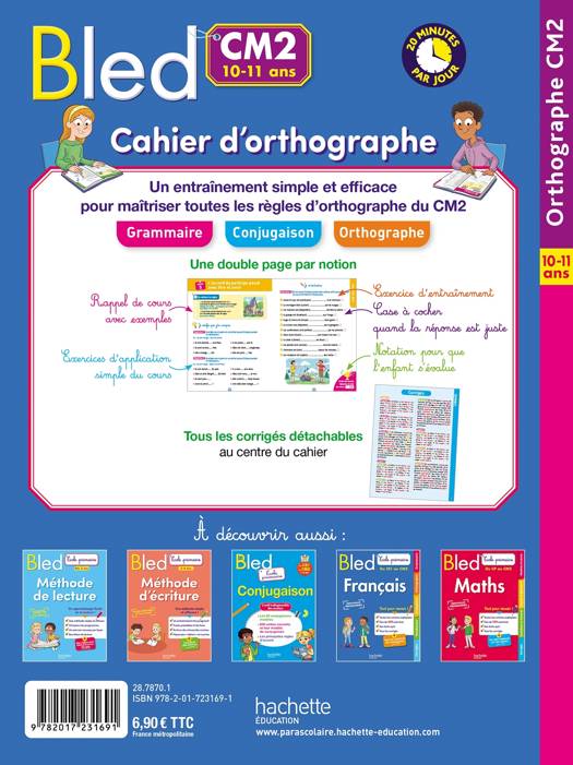 • Au verso de la couverture, les tableaux de conjugaison des verbes modèles.