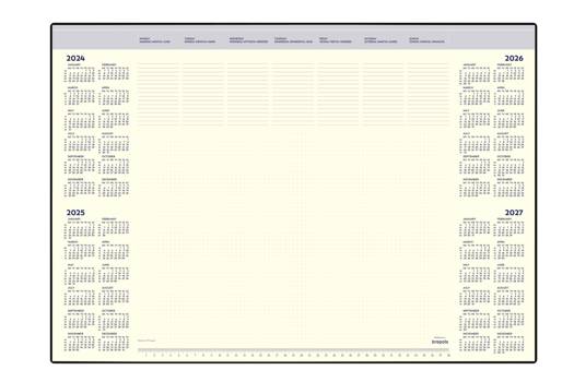 Brepols Desk mate 1 semaine par 2 pages quadrilingue avec notes. 35 feuilles papier chamois avec sous-main et planning 2020-2023 sur format 41,2 x 59 cm.