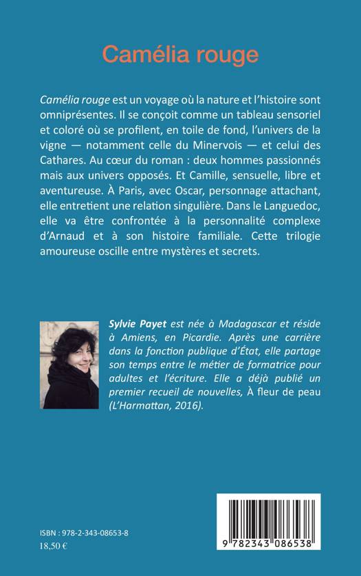 Camélia rouge est un voyage où la nature et l'histoire sont omniprésentes. Il se conçoit comme un tableau sensoriel et coloré où se profilent, en toile de fond, l'univers de la vigne et celui des Cathares. Au coeur du roman : deux hommes passionnés mais aux univers opposés. Et Camille, sensuelle, libre et aventureuse. À Paris, avec Oscar, personnage attachant, elle entretient une relation singulière. Dans le Languedoc, elle va être confrontée à la personnalité complexe d'Arnaud et à son histoire familiale. Cette trilogie amoureuse oscille entre mystères et secrets.