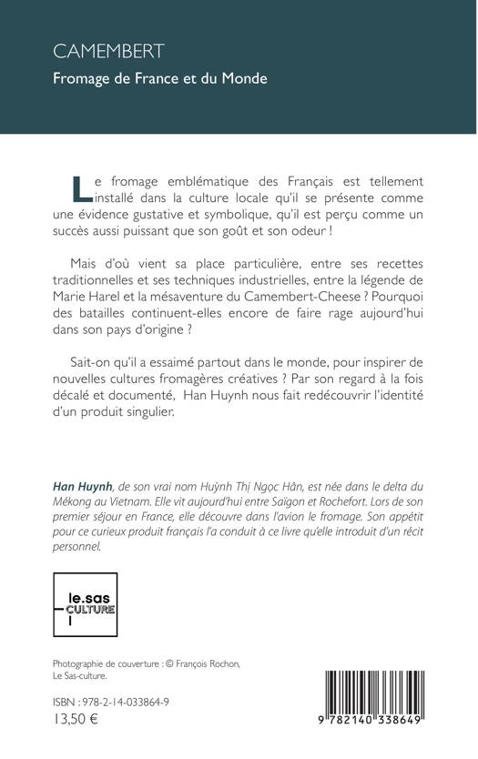 Le fromage emblématique des Français est tellement installé dans la culture locale qu'il se présente comme une évidence gustative et symbolique, qu'il est perçu comme un succès aussi puissant que son goût et son odeur ! Mais d'où vient sa place particulière, entre ses recettes traditionnelles et ses techniques industrielles, entre la légende de Marie Harel et la mésaventure du Camembert-Cheese ? Pourquoi des batailles continuent-elles encore de faire rage aujourd'hui dans son pays d'origine ? Sait-on qu'il a essaimé partout dans le monde, pour inspirer de nouvelles cultures fromagères créatives ? Par son regard à la fois décalé et documenté, Han Huynh nous fait redécouvrir l'identité d'un produit singulier.
