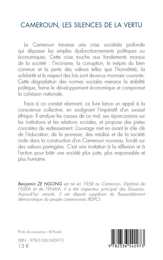 Le Cameroun traverse une crise sociétale profonde qui dépasse les simples dysfonctionnements politiques ou économiques. Cette crise touche aux fondements moraux de la société l'incivisme, la corruption, le mépris du bien commun et la perte des valeurs telles que l'honnêteté, la solidarité et le respect des lois sont devenus monnaie courante. Cette dégradation des normes sociales menace la stabilité politique, freine le développement économique et compromet la cohésion nationale. Face à ce constat alarmant, ce livre lance un appel à la conscience collective, en soulignant l'impératif d'un sursaut éthique. Il analyse les causes de ce mal, ses répercussions sur les institutions et les relations sociales, et propose des pistes concrètes de redressement. L'ouvrage met en avant le rôle clé de l'éducation, de la jeunesse, des médias et de la société civile dans la construction d'un Cameroun nouveau, fondé sur des valeurs partagées. C'est une invitation à la réflexion et à l'action pour bâtir une société plus juste, plus responsable et plus humaine.