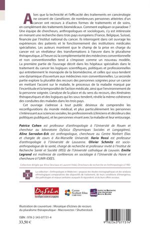 Alors que l'efficacité des traitements en cancérologie ne cesse de s'améliorer, nombreux sont les patients qui ont recours à d'autres formes de soins, en complément des traitements biomédicaux. Comment expliquer ce paradoxe ? Une équipe de chercheurs, anthropologues et sociologues, interrogent dans cet ouvrage les expériences des patients et le fonctionnement des institutions médicales spécialisées, en France, Belgique et Suisse. Les auteurs montrent que le champ de la prise en charge du cancer est un révélateur des transformations à l'uvre dans le pluralisme thérapeutique.
