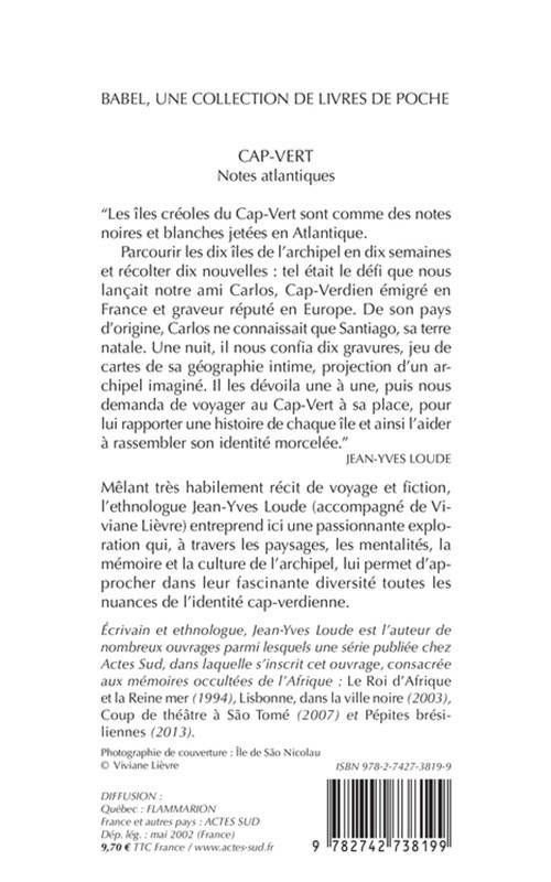 Mêlant très habilement récit de voyage et fiction, l'ethnologue Jean-Yves Loude (accompagné de Viviane Lièvre) entreprend ici une passionnante exploration qui, à travers les paysages, les mentalités, la mémoire et la culture de l'archipel, lui permet d'approcher dans leur fascinante diversité toutes les nuances de l'identité cap-verdienne.